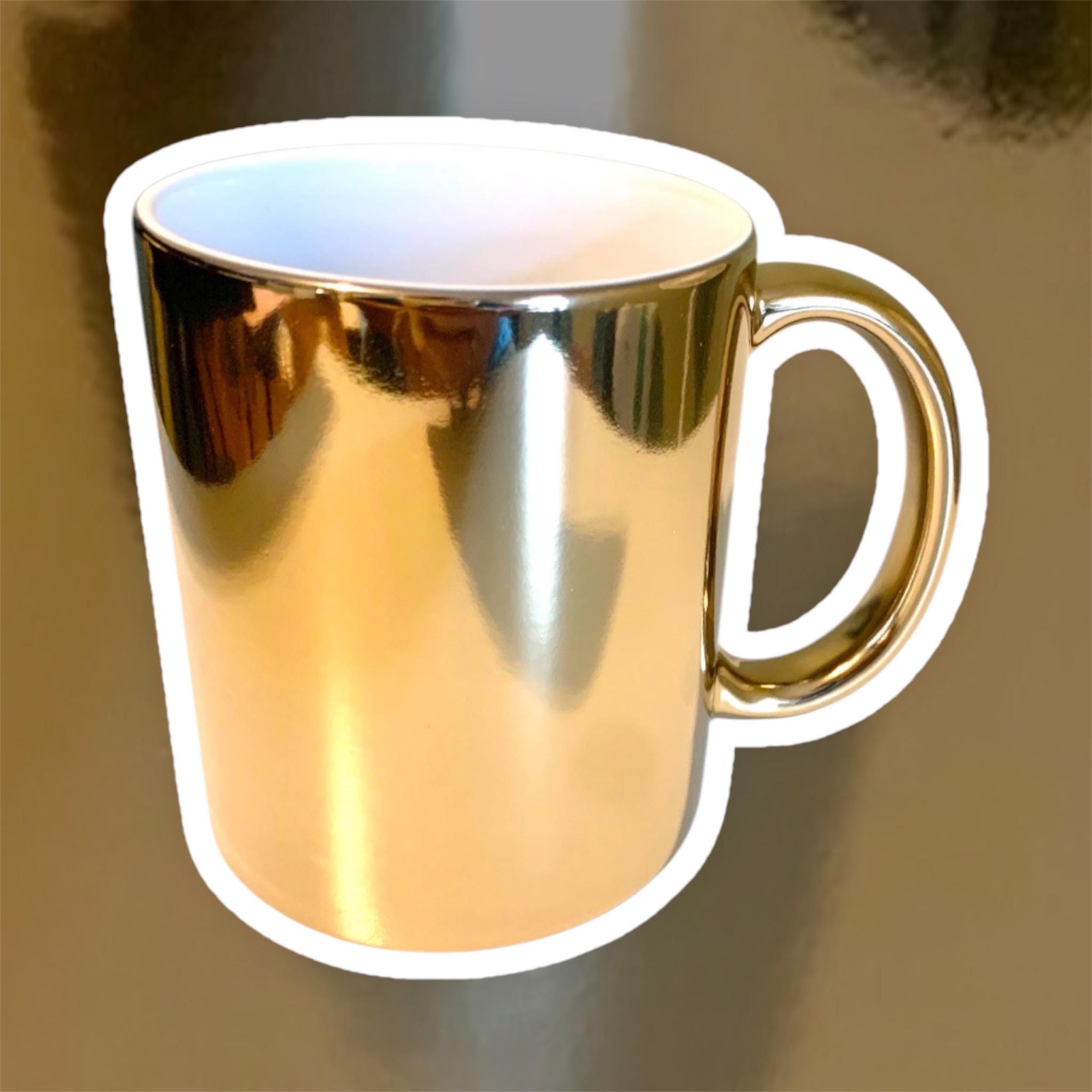 Gold colored mirror 11oz mug. It’s perfect for everyday use or special occassions.